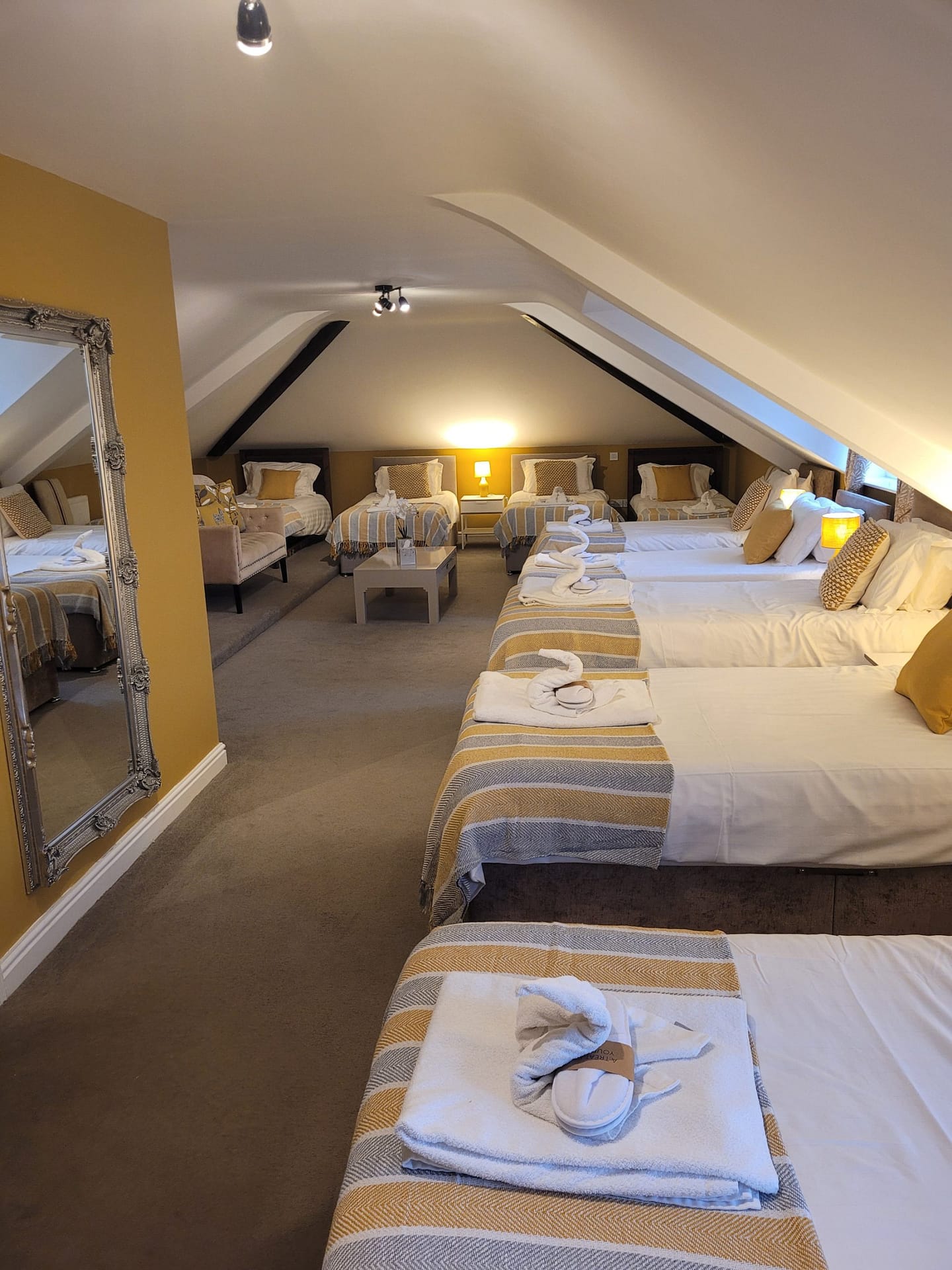The house itself is beautiful and perfectly geared up for a large group with multiple double/twin rooms and a large dorm which although may sound hostel-like was very luxurious! The little touches that Cazz arranges for you and the lengths that she goes to to assist your stay is top class and made for a fantastic start to the weekend. The heated indoor pool with inflatables and the separate games room were fantastic for those feeling active, whilst others chose to relax in the beautiful lounge areas. There are endless cooking facilities there and you will not wish for anything.